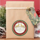 A hand drawn and designed modern double reindeer motif with a pair of deer and antlers was graphically designed to have a gold metallic look with touches of glitter and a swig of holly leaves. Created to seal your Christmas Card or Party Invitations Envelopes in style. Simple. Elegant. Sophisticated. An emerald green border with a double border of gold glitter and a deep burgundy background sets off the design and your personalised names and year. Add a touch of elegance to every Christmas package! Artwork by Audrey Jeanne Roberts, copyright, all rights reserved.