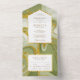Faux Gold Glitter Sage Green Marble Wedding All In One Invitation
