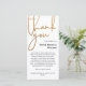 Thank you card for a memorial service featuring a photo of your loved one on the back. On the cover, beneath Thank You written in a hand-writing script and printed with faux gold glitter, add the thank you wording in black against a white background.