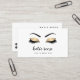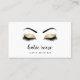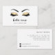 Elegant business cards for lash specialists, brow techs, eyelash extensions, aestheticians or makeup artists feature lush eyelashes and brows with faux gold foil eyelids on a white marble background with two lines of custom text in black calligraphy script and modern sans serif lettering. Customize the back with your full contact details, including social media links.