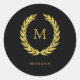 Faux Gold Laurel Wreath on Black with Monogram Classic Round Sticker