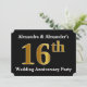 This invitation design features the ordinal number "16th" with a faux gold-like appearance. It also features customised names. It could be used for a married couple’s sixteenth wedding anniversary party.