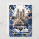 Set the tone for a majestic celebration. This design features a romantic cathedral scene with royal blue blooms and faux gold accents, perfect for fairytale unions.