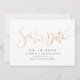 Hand lettered save the date script in faux gold foil colour, elegant and stylish, great modern simple personalised save the date cards.
