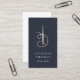 Elegant vertical business cards for seamstresses, fashion designers, stylists, tailors and more feature a needle and thread illustration in faux gold foil, on a rich navy blue background with two lines of custom text in white. Customise the back with your full contact details, displayed beneath a smaller sewing needle illustration.