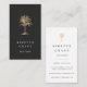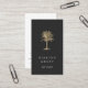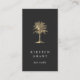 Elegant vertical business cards for any occupation feature a tropical palm tree in faux gold foil on a rich charcoal grey background with two lines of custom text in white. Customise the back with your full contact details, displayed beneath a smaller matching palm tree illustration.