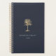 Chic personalised planner features two lines of custom text in classic white lettering, on a rich navy blue background adorned with a tropical palm tree illustration in faux gold foil. Personalise with your name and the year, or your choice of custom text.