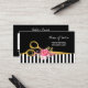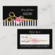 A trendy black and white stripes hair salon friend referral card with a pair of elegant faux gold hair cutting scissors, embellished with a sprig of beautiful pink and gold flowers. Personalise this gorgeous hair and beauty design by adding the name of the salon and friend referral instructions. There is a box reserved for your customers to write in their names and information. Flat printed image, not gold foil.