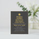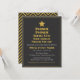 A sleek, chic, trendy and modern baby shower invitation in the theme of twinkle twinkle little star. It has a star on top of the all the words "Twinkle twinkle little star, what a lovely miracle you are!" looking almost like a star decoration on a Christmas tree. Treated with gold foil like texture and a black burlap texture pattern. On the reverse page is a chevron zigzag pattern in the same texture and colours. Personalise easily with your baby shower party details.