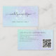 This business card features a modern faux holographic iridescent background with monogram on the front and QR code on the back . Personalise it with your own text.
