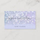 These elegant business cards feature a glam, faux shimmering iridescent look design on a soft, light purple background. Your name appears in trendy handwritten script typography. There is also room to include your social media information on the back.