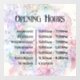 Faux Iridescent Watercolor Glitter Opening Hours Window Cling