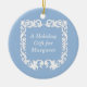 A double-sided blue ornament featuring a faux clay detailing in crisp white. Add your own personalised message and make this a great holiday gift!