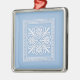 A blue ornament featuring a faux clay detailing in crisp white. Add your own personalised message and make this a great holiday gift!