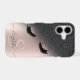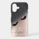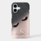 Black glitter ombre, and faux lashes on rose gold with your name, and monogram. Add your name or delete the text for a trendy, popular look.