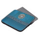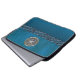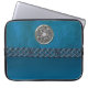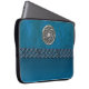 Faux Leather and Metal Celtic Knot Laptop Sleeve. Cyan blue leather like sleeve with a silver Celtic Knot and a blue Celtic chain. Celtic knots are a traditional Celtic art form, are usually chraacterised by having no beginning and no end, and symbolise eternal love and the never-ending cycle of life. It has been found to be a favourite symbol in many ancient civilisations and with many practitioners of magic or mysticism today.
