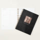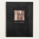 This elegant planner features a digital background image in imitation of black leather texture. Personalise it with your monogram initial in black decorative font and your name in black copperplate lettering on a rose gold faux brushed metal square, along with the year or other text of your choice in rose on the black background.