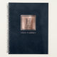 This elegant planner features a digital background image in imitation of navy blue leather texture. Personalise it with your monogram initial in navy blue decorative font and your name in navy blue copperplate lettering on a rose gold faux brushed metal square, along with the year or other text of your choice in rose on the navy blue background.