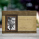 Elegant faux leather and parchment background for this memorial or funeral guest book with photo frame. You can easily change image and text (font, colour, size and position) by clicking the personalise or customise button. Available in mini binder, large binder with filler pages. Matching Memorial service invitation, Sympathy Thank you photo card, family address label and envelope.
