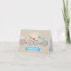 Bicycle-themed weddings are a fun trend in themed weddings. On this faux linen background wedding card, two bicycles meet and create a small heart to symbolise the married couple-to-be. The bride's bike has a wedding veil on the seat and a bouquet in the basket. The groom's bike has an untied bow tie wrapped around the handlebars. A thank you message stands out in a sky blue banner underneath the bikes. A customised message prints inside. This message can also be deleted in order to leave the interior blank for you to handwrite your own personal message. Available with matching products with a option for a tandem bike.