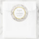A wedding sticker with your personalised information with an elegant FAUX marble alabaster background texture. Taupe / tan and cream colours blending together, creating interesting patterns for a classy modern look. The centre has a circular frame with a faux gold foil border.