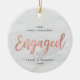 Faux Marble First Christmas Engaged Personalised Ceramic Ornament. Personalise with your custom information on both front and back.