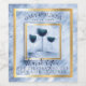 Fun wine labels for your wedding favour wines, featuring a trio of wine glasses and marbelized background in popular blue, with faux gold trim, personalised with the names of the bride and groom, and text of your choice.