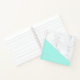 A customisable notebook featuring white and grey faux marble with an aqua blue accent. Personalise by adding your own name or a short phrase.
