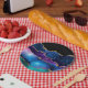 Faux Marbled Agate Stone Galaxy Sparkly Shining Paper Plate