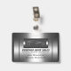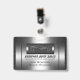 Metallic series: A stylish name badge for your auto sales company. Great for meet-ups and shows. Just upload your logo or use the silver auto logo provided. Then customise with your details and give a strap line or quote for that really professional feel. The design uses shiny metallic elements, looking a little like engine parts, for a focused sports, muscle and luxury feel. Together with the silver auto logo, the design style matches what your customers are looking for in an auto and so inspires confidence that you have the right one for them. And it's a cinch for you to personalise the details - just type them in!