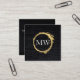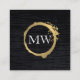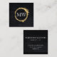 Faux Metallic Gold Velvet Black with Monogram Square Business Card