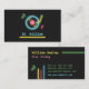 A business card with the faux effect of neon lights of a dj turntable and music notes to bring out the club and nightlight environment of disc jockeys.