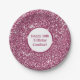 Faux Pink Glitter Texture Look With Custom Text Paper Plate