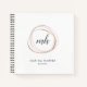 Chic notebook design features your monogram or initials in modern calligraphy script, inside an abstract circle in faux rose gold foil. Personalise with two lines of custom text beneath.