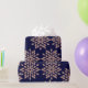 Faux rose gold and navy blue floral pattern wrapping paper. The design features a rose gold floral motif on a navy blue background.