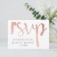 This response card features a hand-lettered look brush script type with a faux rose gold foil texture.