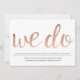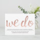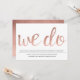 This wedding invitation features a hand-lettered look brush script type with a faux rose gold foil texture.