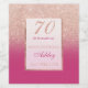 A modern, pretty chic and elegant faux rose gold glitter shower ombre with magenta pink colour block 70 and sensational birthday party wine label with rose gold ombre pattern fading onto a pink background with and elegant gold frame Perfect for a elegant 70th birthday.