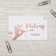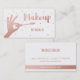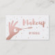 A trendy and elegant business card for makeup artists to strike an impression with potential customers. The design features the silhouette of a hand holding on to a mascara brush treated with a faux rose gold texture. The brush lettering letters for the word "Makeup" and splatter dots around the design. Personalise easily with your business details.