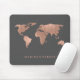 This modern mouse pad features the world map of continents in faux rose gold, on a dark grey background for some geographic style!