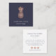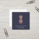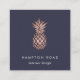Elegant square business cards feature a faux rose gold foil pineapple illustration on a rich midnight blue background with two lines of custom text in white. Add your contact information to the reverse side. Includes three rose gold social media icons and a field for your username.