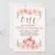 Sweet floral and faux rose gold foil first birthday invitation for little girl featuring a pumpkin and pink floral arrangements. The word one is in a faux rose gold foil texture. This design is a sweet way to invite guests to your little one's first birthday party.