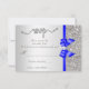 Faux Royal Blue Bow Silver Sequins RSVP Wedding Card