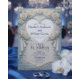 Celebrate your sophisticated industrial union with this blue-gray architectural design featuring a central heart frame and 3D-effect carved floral motifs.This design demonstrates high-level observational expertise in neoclassical masonry, featuring a central heart-shaped cutout framed by realistic faux-carved drapery and intricate white roses. The composition utilizes a sophisticated palette of monochromatic blue-gray and cream, set against a weathered brick-texture background to evoke a romantic loft atmosphere. The typography balances a clean, authoritative serif with an fluid, artistic handwritten script, ensuring a hierarchy that is both legible and aesthetically refined. Shadows and highlights are digitally rendered to provide a convincing 3D dimensional effect, ideal for modern classicists.