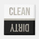 Glamourous clean/dirty dishwasher magnet in black, white, and silver.