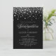 Faux Silver Foil Confetti Dots Black Graduation Invitation