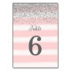 Faux Silver Glitter Pink Wedding Table Number Card