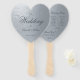 Faux Silver Grey Calligraphy Heart Wedding Program Hand Fan