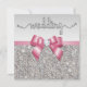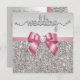 Faux Silver Sequins Pink Bow Wedding Invitation