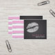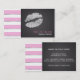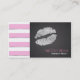 Faux Silver Shine Lips Pink White Stripes Chic Business Card